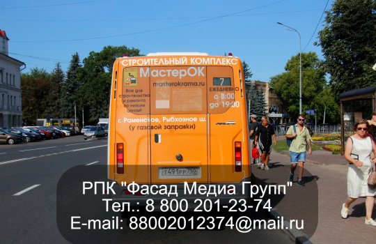 РПК «Фасад Медиа Групп» разместило рекламу для нашего клиента – строительного комплекса МолотОК. Реклама размещена на заднем борту городских маршруток. Арендовано 5 машин на 1 месяц